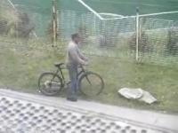 Cikán šoustá svůj bicykl