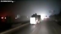 V Číně na dálnici během jízdy přehazovali zboží z náklaďáku na dodávku.